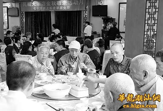 据介绍,从10月22日起,民航大酒店举行“金秋敬老活动月”将一直持续至农历九月三十,即11月13日结束。活动期间,全市70岁以上长者都可以凭本人身份证到民航酒店三楼餐厅,免费喝早茶。