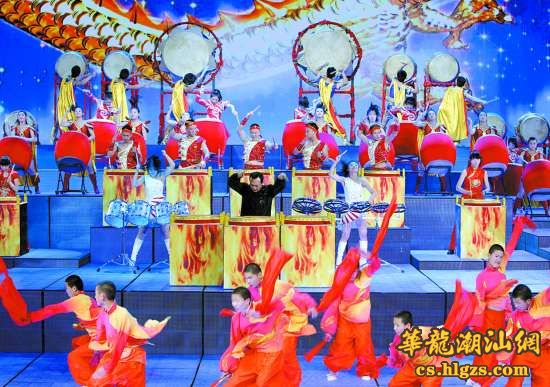 昨天晚上,“2012CCTV民族器乐电视大赛”颁奖晚会民族音乐盛典在中央电视台音乐频道播出,晚会一开场,汕头文化艺术学校大锣鼓队与北京凤乐团、奇鼓团以及部分获奖选手共同演绎的《盛世龙腾》就牢牢锁住了观众的视线,随着背景画面蛟龙翻腾飞跃,气势磅礴的演奏也排山倒海般高潮迭起,让人心潮澎湃,情绪激昂。让潮汕人骄傲的是,这支实力派的演出队伍中,汕头文化艺术学校大锣鼓队的五只大鼓就居于舞台正中央的醒目位置,与两旁的潮汕锣、钹互相应和,鼓乐齐鸣,一招一式传递出潮汕大锣鼓的浓浓韵味。