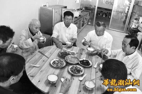 郑会长招呼老人们围坐在一起,老人们相互之间帮忙添饭、夹菜,吃完由活动中心的工作人员收拾、清洁。记者发现,活动中心里这些工作人员也几乎都是头发斑白的老人,只不过看上去比八、九旬的老人家年轻一些。