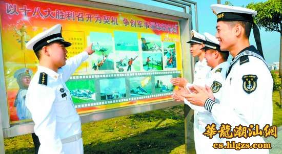 党的十八大胜利召开以来,驻汕海军某部积极利用报纸、网络等媒介组织官兵学习贯彻十八大精神,并开展了“我为党旗舞动”等系列教育活动,进一步增强官兵“永远跟党走、绝对听指挥”的坚定信念。图为官兵们在学习十八大精神及交流学习心得。本报记者 王开颖 通讯员 尹毕华 陈健 摄影报道