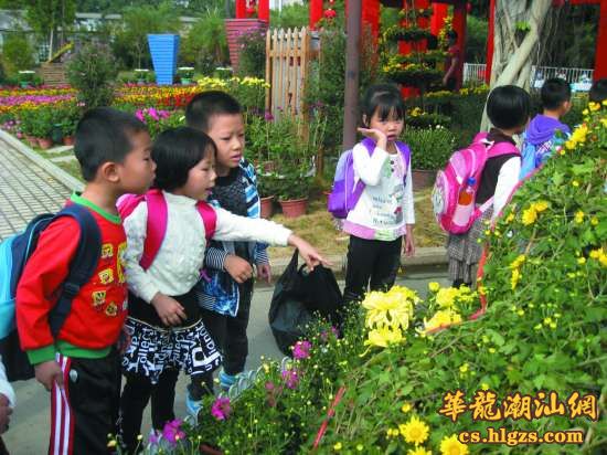 据了解,汕头市区第26届群众菊花展览将持续展出至12月中旬。其中,主展区中山公园展出菊花3.5万盆,近200个菊花品种,集中展示品种菊、盆景菊、悬崖菊、精品菊等,同时用文字和图片介绍我国源远流长的菊花文化。华侨公园展区也有2.5万盆菊花及其它花卉迎接游客,园区园丁辛苦培植的5000盆大立菊、大柱菊、塔菊等多品种菊花组成“中华情”、“喜盈门”、“龙腾盛世”、“乡村小憩”等8个景点,既有外国著名景观,又有潮汕农家乐,构思巧妙、别具韵味;公园还购入2万株万寿菊、一串红、矮牵牛等,利用这些花卉和小盆菊花在公园入口正面大草坪组成“色带”图案,配合绚丽绽放的菊花景点,形成百花竞艳、花香四溢的景观。右图:孩子们被眼前的花海“醉”倒了。