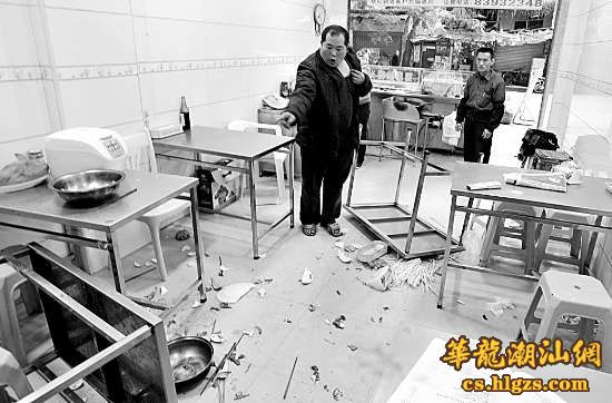 经了解,该店老板陈才德经营老妈宫粽球已有30多年,10年前他在跃进路开了一家肥德妈宫粽球店。最近不时听到有食客说他在潮安卖的粽球不好吃,于是引起了他的注意。不久前,他独自前往潮安了解,并用手机拍下了假冒老妈宫棕球的饮食店照片,受到阻挠和恐吓后,陈才德向当地有关部门举报,这家“三无”饮食店随之被取缔,并被责令不准再经营。经营者恼羞成怒,昨天中午从潮安县带了20多人乘坐三辆面包车,冲进店里打砸,店老板陈才德和他的女儿被打,店内桌子被掀翻,抽柜里的700多元现金被抢走。陈才德寻找机会拨打“110”报警,民警迅速赶到现场,将部分砸店人员带回了派出所进行调查。