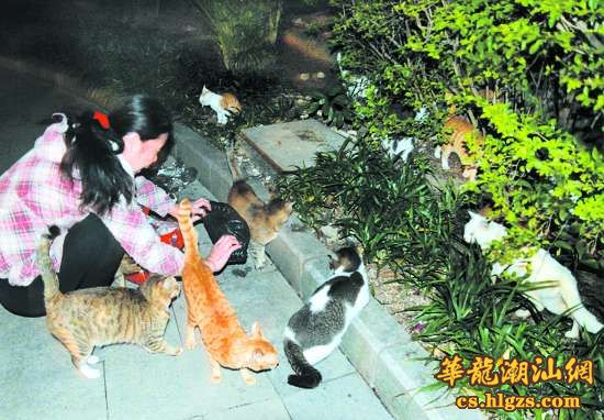 大姐告诉记者,每天固定前来喂猫的爱心人士约有十余人,主要是些退休的老人,她们有钱的出钱,有力的出力,除了买小鱼和米饭搅拌成猫儿们喜爱的传统“正餐”外,有时也买点专门的猫饲料给猫们来点“西餐”改善伙食。