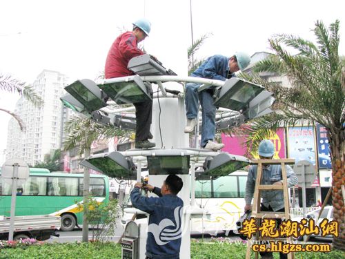 为提高夜间照明亮度,达到节能又美观的效果,近日,市路灯所组织工作人员对市区北河大桥北端环岛的路灯进行更换,将原来的路灯光源更换成LED灯。据介绍,新型LED路灯与原来的普通节能路灯相比,具有高效、安全、节能、环保、寿命长、响应速度快等优点。郭楚凯 摄