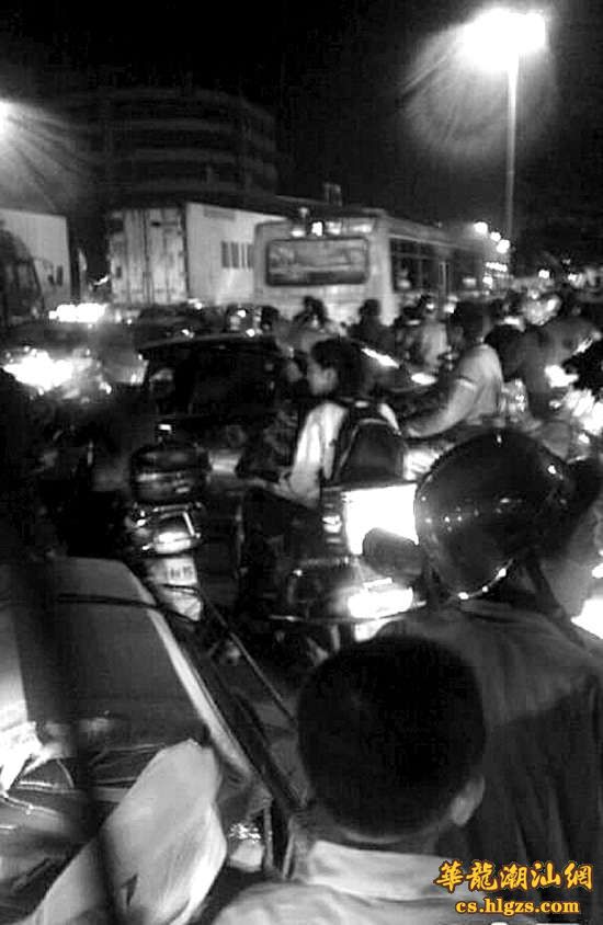 马路一堵,有一些小车就自作聪明转向绿化带旁边的自行车道,很多摩托车和自行车也一窝蜂往前冲,结果这里也立即堵住了,而与此同时从广厦住宅区和高新区的各条区间路上还不断有大量的小车、摩托车和行人冒出来,两边夹击的结果是雪上加霜,不仅东厦北路堵得寸步难行,连东厦北路左右的各条区间路都被逆行的人流、车流咬得死死的。左右都是汽车的红色尾灯,到处都弥漫着汽车尾气,被堵住的人们只有无奈叹气。