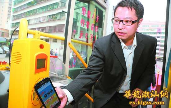 从昨天开始,市民在澄海区乘坐公交车,也可以通过刷D城通手机支付了。昨天下午,D城通卡公交支付服务暨澄海区“公交一卡通”在澄海启动。从下月起,我市中心城区50余条公交线路、超过600台实行一票制的公交车与澄海区15条公交线路、110台实行一票制的公交车都将支持新增的城通卡刷卡支付服务。 本报记者 陈史 摄