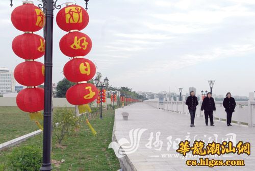 三位老姐妹在风景宜人的揭东临江绿道悠闲散步。