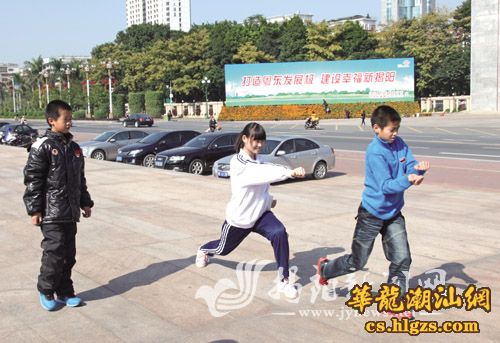 市区临江北路长廊,几位学生动起来,练武驱走寒意。