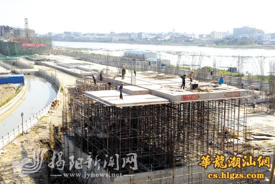 市政工程榕城围南堤景观项目“南浦渔歌”工程建设加紧推进,施工人员放弃节日休息时间,加班加点,力争工程早日竣工。郑楚藩 摄