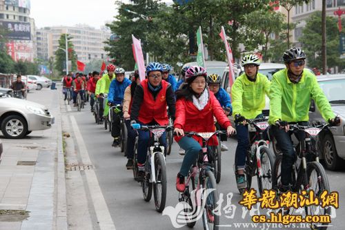 骑行活动于元旦下午在青年文化广场启动,吸引了60多名骑友参加。骑行开始前,活动参与人员先在公益环保倡议签名板上签名,然后骑行队伍从青年文化广场出发,途经临江北路、北河大桥、临江南路、揭阳楼前和揭东滨江路,行程约18公里,一路展示骑行者矫健风姿和文明风采(见图。通讯员 摄)。