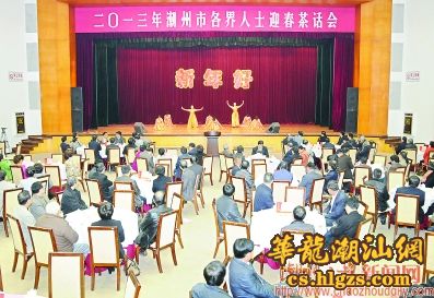 市委书记、市人大常委会主任许光在茶话会上发表了热情洋溢的讲话。他代表市委、市政府向全市各民主党派、工商联,各人民团体和无党派人士,向全市工人、农民、知识分子和干部,向驻潮部队指战员、武警官兵和公安干警,向潮籍港澳台同胞、海外侨胞以及各界人士致以新春最诚挚的问候和最美好的祝愿。