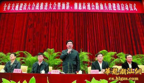 本报讯 (记者林馥盛 实习生孙嘉翰)昨天上午,市委、市政府召开全市交通建设大会战推进大会暨汕湛、潮惠高速公路汕头段建设启动仪式,明确目标,明确责任,明确时限,激励全市各级各部门坚决打好加快交通基础设施建设这场硬仗。市委书记陈茂辉主持会议并宣布汕湛高速公路、潮惠高速公路汕头段工程启动建设,他强调,全市上下一定要统一思想,齐心协力,攻坚克难,加快交通基础设施建设,推进汕头科学发展。市长郑人豪在会上作讲话,副市长李耿坚作工作部署。