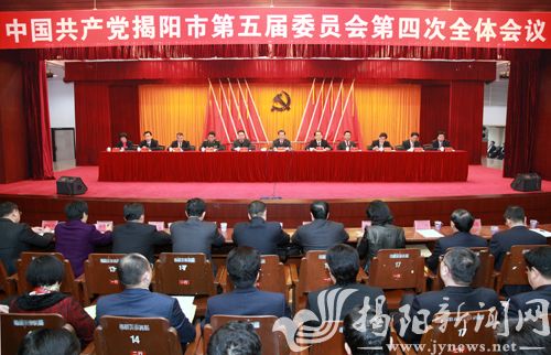 市委五届四次全会昨天在市区召开。会议的主要任务是,以党的十八大精神为指引,深入贯彻落实省委十一届二次全会精神,回顾总结去年工作,分析形势,安排部署今年工作,动员全市上下坚定信心,埋头苦干,攻坚克难,力求实效,努力建设粤东经济强市,为“打造粤东发展极,建设幸福新揭阳”奠定坚实的基础。