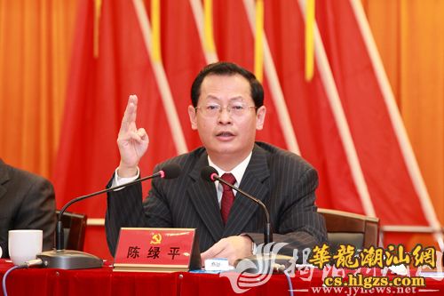 陈绿平在报告中总结了去年的工作。他说,2012年是揭阳发展史上极不平凡的一年。一年来,面对外部经济形势的严峻挑战,面对发展过程碰到的艰难险阻,在省委、省政府的正确领导下,市委团结带领全市人民,以学习贯彻党的十八大精神为契机,按照市第五次党代会的决策部署,务实谋跨越,高效抓落实,发展为人民,各项工作取得突破性进展,形成了强劲的发展态势。突出体现在实现了思想领域的纠偏正本,开创了跨越式科学发展的崭新格局,初步形成了法治化国际化的营商环境,实施了一大批影响深远的民生工程,打造了一支廉洁守法干事的党员干部队伍。