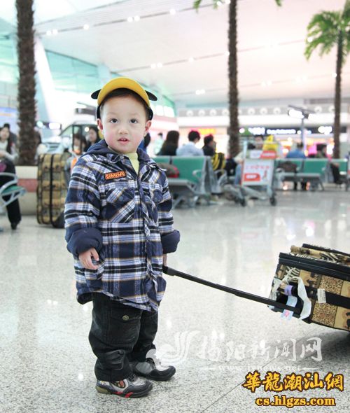 小小旅客拉着行李,瞪着大眼睛好奇地打量着四周。