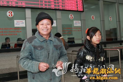 在岐山车站,刚刚购得回乡车票的老者笑逐颜开。