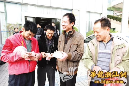 我市人社部门开展专项检查,确保春节前农民工工资基本无拖欠。图为几位在揭务工的农民工领到被拖欠工资时喜笑颜开。杨继斌 摄