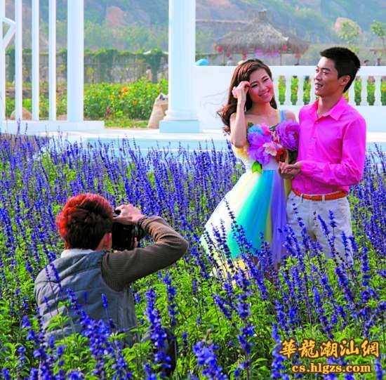 还未等到春节长假,人们却已经收不住飞扬的心情、出游的脚步了,刚刚过去的这个周末,丹樱生态园花开正好、游客如织。随着人群越过大门,穿过古朴的木制栈道,沿着阡陌纵横的小路信步走去,只见这片4000多亩、山水环绕的田园被分成若干区域,但目及之处,无一不是耀眼鲜艳的颜色,高低不一、颜色各异、迎风招摇的花朵漫山遍野地开放。据园区负责人陆展鹏介绍,今年的丹樱,相较于去年,又要生色不少,除了传统观赏项目“七色花海”之外,今年新增的20亩向日葵、20多万株薰衣草、成片的格桑花、新引进的巴西醉蝶等数片花田也成为许多游客慕名而来的观赏热点。不少游客徜徉于齐腰高的向日葵花田中,一大片顶着花盘儿迎着太阳生长的向日葵备受文艺小青年们的青睐,他们自诩是都市里的“向日葵族”——给点阳光就灿烂,没有太大野心,善于发现微小幸福,对生活充满热情的阳光天性。在其隔壁,细弱娇柔的格桑花平铺而去,像一条花毯,让人忍不住猫下身子端详,鲜有人知道,格桑花的花语是“幸福之花”,花杆虽弱小,但风愈狂,它身愈挺,雨愈打,它叶愈翠,太阳愈曝晒,它开得愈灿烂,它是寄托了期盼幸福吉祥等美好情感的花朵。除了这给人心灵的鼓舞、让人流连的两片花海之外,今年的薰衣草花海也较去年更风姿绰约些,陆展鹏称是这个暖冬宜人的气候造就了这一片紫色浪漫,于是吸引不少年轻小情侣沉浸期间,清风拂过,花枝摇曳,绵延整个花田,远远望去,就像一袭紫蓝色的清波海浪,翻动着穿梭其间的少女们的裙裾,也翻动着青年们心中清淡甜蜜的浪漫诗情。而与之相呼应的,是浪漫熏衣草花海附近一片深红色玫瑰园,加上几座颜色艳丽的荷兰风情建筑,大红、湖蓝、深粉、浅紫,点缀在山水田园中,漫布在蓝天白云下,使得这里成为粤东地区不可或缺的婚纱拍摄基地之一,据介绍,丹樱日均迎接15对准新人入园拍摄,而年末期间,人还要更多些。
