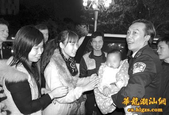 本报讯 心肝宝贝,你终于平安‘回家’了!”5日晚上7时多,金平公安分局大门口站着一对不时翘首张望的夫妻,当一辆闪烁着警灯的警车驶近前车门打开的瞬间,夫妻抢步上前,从车内民警手里接抱过一名男童,亲人团聚的温馨镜头也感动了在场的民警和媒体记者!至此,1月30日中午在岐山街道中宫社区篮球场被拐走的20个月大的男童小楷瑞(本报2月1日曾做报道),在2月5日下午终被金平警方在陆丰碣石镇安全解救,并第一时间送回了汕头亲人身边……