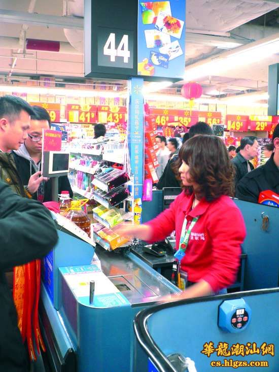 据超市工作人员介绍,2月8日、9日两天,超市客流量比平日激增两成,每个收银员每天在收银台前一站就是8个小时,平均每人每天扫描商品达3400个。大年二十九这天,不少收银员还得坚守岗位至晚上9时才能回家,错过与家人团聚的年夜饭。