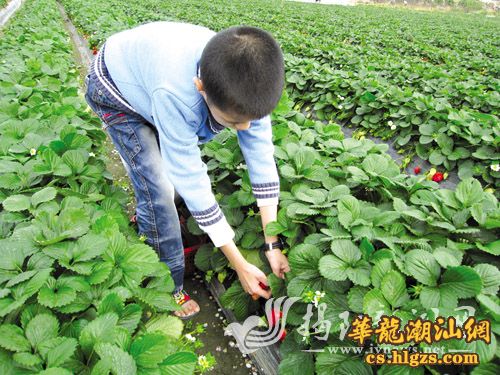 大年初一,当人们沉浸于欢乐的新春佳节之际,浙江省建德市农民在惠来县惠城镇梅三村栽种的草莓园里却是另一番景象:在灿烂的阳光照耀下,小孩子提着水果篮在草莓园里自由自在地采摘鲜红、熟透的草莓,感受大自然春天的来临,呼吸新鲜空气,体验绿色、休闲的乐趣。郑文德 摄