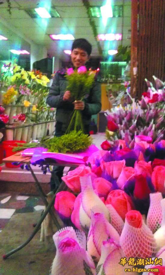 本报讯(记者 许玉璇 摄影报道)春节黄金周巧遇“情人节”,不少原来两地相隔的情侣回家团聚,不需再通过邮寄的方式,男士可以通过亲自挑选,将最鲜艳的玫瑰赠给女友,这个情人节的鲜花销量由此大增。