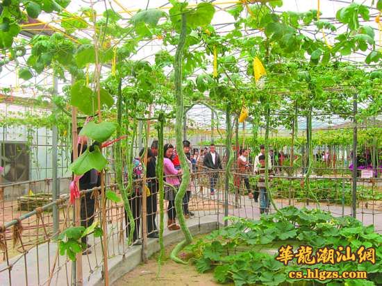 12日下午,记者来到汕头农科园,只见油菜花、向日葵、月季花等各色花卉争相绽放,许多游客流连在花间(右图)。瓜果园里,一条条学名叫“蛟龙”的蛇瓜从棚架上垂落下来(上图),有的长得比一般成人还要高,约有2米左右。走进奇花异果园,紫红的蝴蝶兰让人眼前一亮,2000来个葫芦垂挂在棚架下跟列队似的,白萝卜上长出白菜、芥蓝、包菜等的混合蔬菜,让游客看得大呼过瘾。本报记者 张锦梅 摄