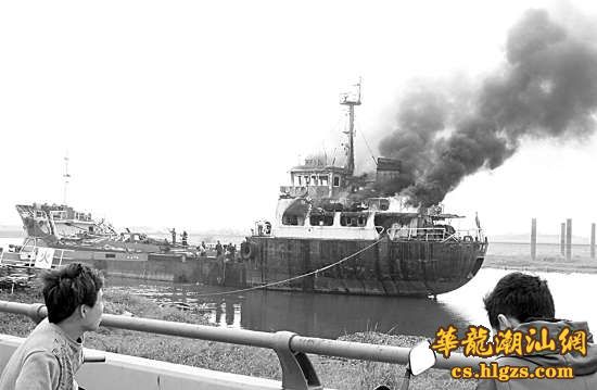 本报讯 记者李伟烽摄影报道:昨天下午4时许,停靠在市区西港河岸边的一艘大型报废船突然起火。记者了解到,起火原因初步判定是工人在拆卸时不慎引燃船内残留汽油,所幸的是消防部门及时出动将火情扑灭,未造成人员伤亡。