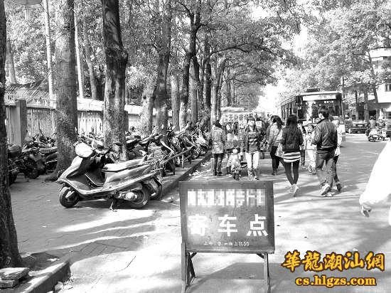 在人行步道设寄车点收费的现象在市区也不少。记者走访发现,市区不少路段,特别是商场、医院、车站、公园等场所附近,原本并不宽敞的人行步道被圈起来用作收费停车场地,行人只得绕往行车道与机动车同行。而这些地段,人流量和车流量相对大,不仅容易造成交通拥堵,行人安全也得不到保障。