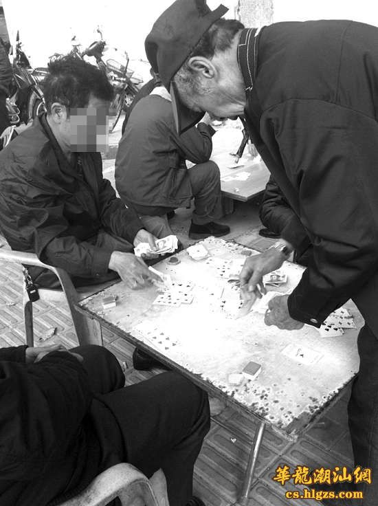 “阿伯,你们每盘输赢多少钱?”见记者发问,参与的一名男子好像警觉起来,“没有,我们只是打牌玩玩,不赌钱。”但记者在现场看到,每张桌上除了扑克,每名参与者桌前还摆有看起来像砝码的物品,这些“砝码”有的是一只麻将,有的是数张纸牌或小块瓷砖,当一局结束后,参与者立即交换这些“砝码”,似乎对规则了如指掌。据知情者透露,每名参与者桌前摆着“砝码”有一定隐蔽性,路人如不细心留意,无法洞察到其中的实际赌金,只有当一张桌子四位参与人员同意结束牌局时,才会依据“砝码”的多少进行现金结帐。