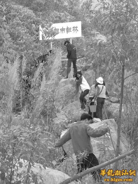 比如2004年的3月13日,本报领导及编辑记者等工作人员一行30多人专程来到狗母涵山,为2年前种植营造的“汕头都市报林”进行养护。当时,两年前种植的马占相思、勒仔刺和尾叶桉等速生树种,已普遍长到三、四米高,最高的尾叶桉更有6米,林木密集之处已现郁郁葱葱。