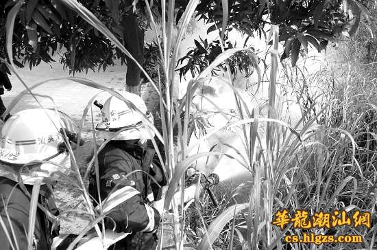 本报讯 (记者罗林晓摄影报道)昨天上午9时许,汕汾路与嵩山路交接处附近一荒废场地的草丛发生火灾,本报记者在现场见证了公安派出所和消防人员在接报警后不到5分钟赶到现场并迅速扑灭大火的全过程。