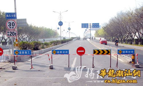 昨天上午,记者在梅东大桥采访发现,该桥一侧机动车道再度封闭,桥面有工人正在施工,桥头设置有“道路施工”、“道路封闭”的交通标志(见上图。 郑楚藩 摄)。有市民不禁发问:梅东大桥及其附近路段曾一度实施交通管制进行施工,在春节前几天才通车,现在时隔不到一个月又再度封闭, 原因何在?