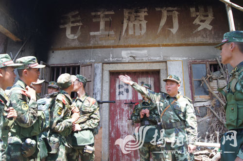 图:在部队拉练野营过程中,组织官兵到革命老区参观历史遗迹。钟银辉 摄