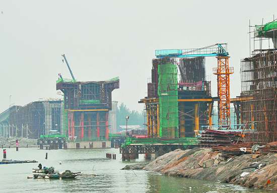 记者昨天来到了濠江大桥施工现场,看到各种施工机械正忙碌作业中,现场机声隆隆,大桥的东西引桥雏形已初现。据项目部经理郑镇坚介绍,濠江大桥目前已经完成总工程量的72%,主桥的桩基础和承台施工已经基本完成,接下来将进行主桥上梁施工和变截面箱梁施工。疏港大道(含濠江大桥)建成后,将连通河浦大道、深汕高速公路、国道324线、汕头保税区、广澳深水港,有效改善工业经济带和省示范性产业转移工业园的投资环境。