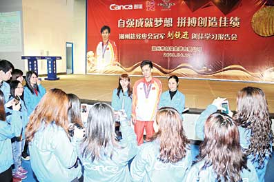 他刚从市创佳集团为其举办的学习报告会上回来。虽然有些累了,但他仍愉快地接受了记者的采访,向我们讲述了他夺取金牌的艰辛经历和自强不息的真切体会。