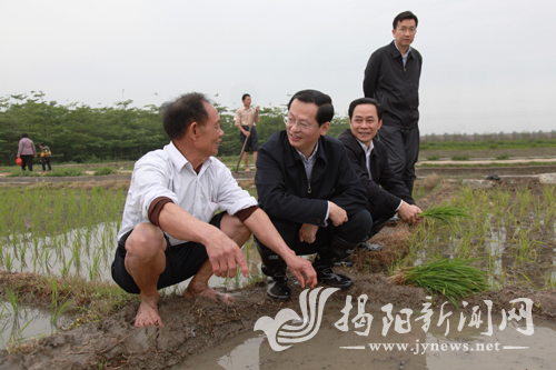 陈绿平十分关心春耕生产,在霖磐镇德北村,村民正在田里插秧。陈绿平走上前去,与村民陈成荣蹲在田埂上拉起了家常,当了解到陈成荣种植有1亩多水稻,每年的收成都不错时十分高兴,要求蓝城区一定要加强对农户春耕生产的指导,加快推进农业现代化发展。