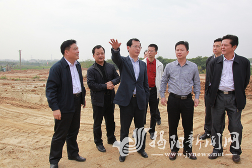 在揭东经济开发区二期基础设施项目建设现场,陈绿平要求要立足把开发区建设成绿色生态和转型升级示范区的定位,加快建设进度,完善水、电、路等基础设施建设,尽快招商引资,尽快见成效。