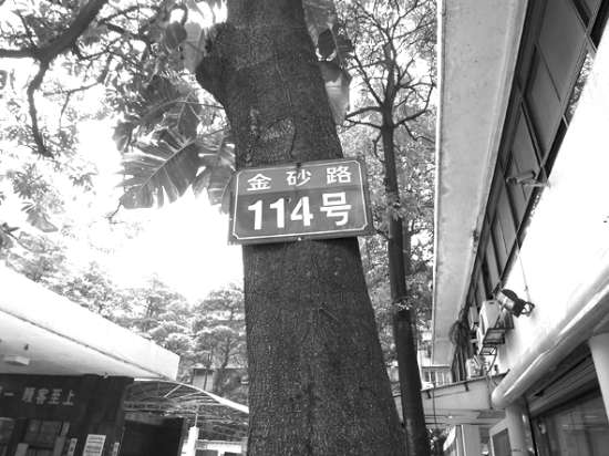 本报讯(记者 黄泽春) “这里有一块门牌竟然装在路边的大树上,好奇怪啊!”昨天上午,有热心市民向记者反映了这一出现在市区金砂路的咄咄怪事,并希望有关方面能尽快为这块门牌“复位”,以免造成误导。