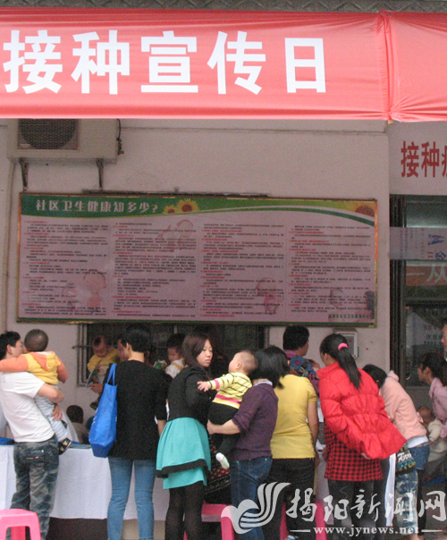 活动当天,市疾控中心工作人员先后深入揭东区曲溪街道、空港经济区渔湖镇开展宣传活动。工作人员在活动现场向群众发放《给儿童家长的一封信》、《国家基本公共卫生服务项目100问》和《预防手足口病》等宣传资料,并向他们普及有关疫苗、传染病防治等知识,活动每到一处都吸引了众多群众的积极参与(见图。蔡婷 摄)。