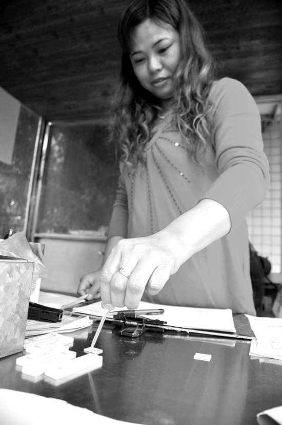 近日下午4时多,记者来到金平区华达隆生猪定点屠宰厂,刚好碰到几辆从福建运载生猪来汕的货车正准备进厂。记者看到,这些生猪看起来比较“生猛”,虽然历经长途跋涉,但车一停下,立刻就有不少猪挺起身子伸胳膊踢腿做“运动”。工作人员拿来一根铁钎穿过货柜的栅栏在猪群里一阵搅动,猪儿们便发出“嗷嗷”的叫声。工作人员介绍说,这样就能够提取到新鲜的猪尿液,用于瘦肉精和残留药物的快速检测。这道检验工序在进厂前就需要进行。与此同时,驻厂检疫的金平区兽医防疫检疫站的工作人员还需查验生猪耳朵上的免疫标识,以及送猪人员提供的《动物产地检疫合格证明》等一系列证明后,才允许生猪进厂卸车。