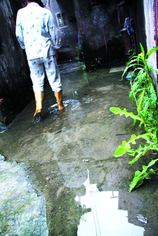 市民陈女士是十多户居民中的一户。自从数年前附近片区大规模拆迁后,陈女士就过着每天都要涉水而行的生活。据她介绍,当时的拆迁行动中大量沙石被冲入下水管道,导致管道堵塞,每到下雨天污水就涌上巷道,而由于处理不及时,久而久之也就形成如今天天积水的局面。天气一热,满地污水不仅孳生大量蚊虫,还发出阵阵恶臭,附近十多户居民对此苦不堪言。陈女士告诉记者,今年四月曾有媒体对此事进行曝光,不久后有专人来通渠清理,但只是清理巷道前半段,对后半段却置之不理。