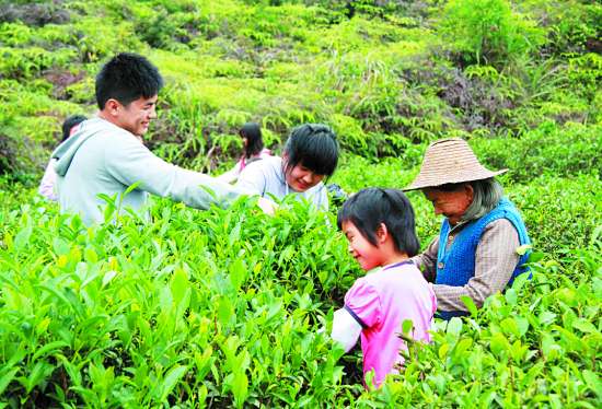 5月7日,潮南区成田镇千山村的村民忙着采摘春茶,送往该村“扶贫双到”造血项目——千山村茶叶专业合作社加工制作。据悉,该村茶叶产业被定为造血项目得到扶持,使废弃20多年的老茶园重新焕发了新绿。