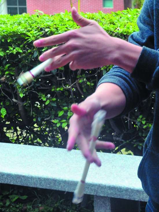 今年21岁的李廷云是汕职院物流管理专业大二的学生。他接触转笔运动不过才3年,但已在圈内小有名气了。转笔运动属于快手极限运动,和魔方、溜溜球、叠杯等一样都是对手部灵活程度要求很高的运动。2010年初,李廷云无意间在网上看到一个转笔的宣传片,片中表演者灵活而多变的手部运动令他十分惊奇。从那以后,李廷云就用普通的写字笔模仿、摸索,渐渐地喜欢上了这种手指运动。