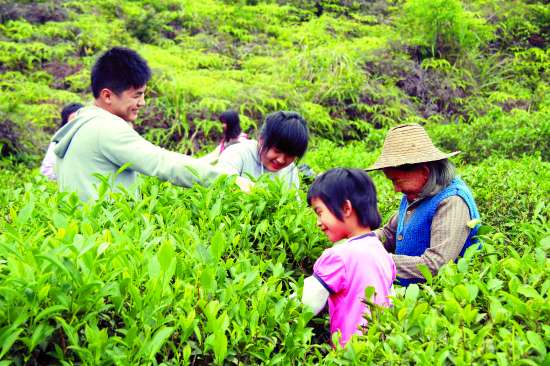 近日,潮南区成田镇千山村的村民忙着采摘春茶,送往该村扶贫双到造血项目——千山村茶叶专业合作社加工制作。据悉,在计划经济时期,潮南区成田镇千山村家家户户都有茶园,该村也以盛产乌龙茶出名。改革开放后,该村的茶园逐渐废弃。近两年来,在市纪委对其进行对口扶贫,使该村茶叶产业成为脱贫的重要绿色产业,废弃20多年的老茶园重新焕发了新绿。图为村民上山采摘春茶。 姚军 摄影报道