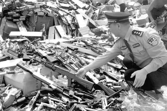 从现在起到今年年底,澄海警方将继续加大缉枪治爆行动力度,落实治安、刑侦、经侦、巡警部门和派出所在日常管理中加强摸查、打击和整治,做到发现一宗、打击一宗,依法从重追究涉案人员的法律责任。右图:警方准备销毁仿真枪。