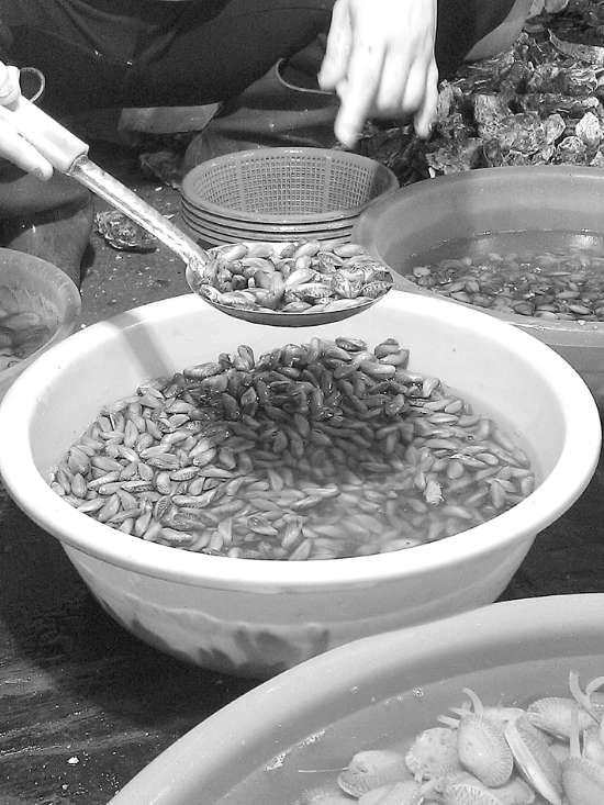 本报讯 (记者郑于蓝摄影报道)时下,新出薄壳上市,勾起了不少爱吃薄壳的市民的食欲。记者昨天走访中心城区部分农贸市场,发现刚刚上市的薄壳个头都比较小,也不够肥美,零售价普遍在12元至13元左右,与去年同期持平。