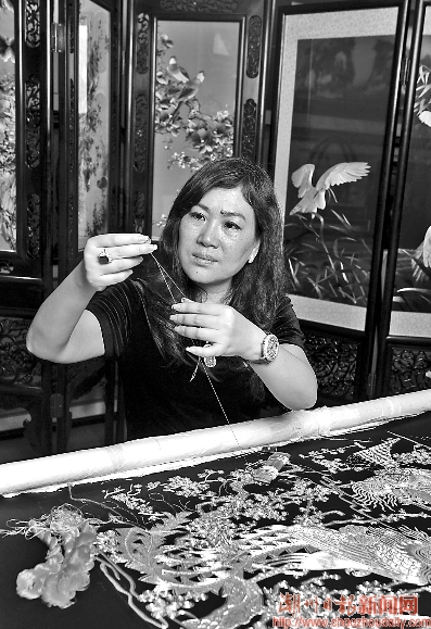上图是引入油画技巧的潮绣作品(5月10日摄)。
