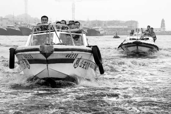 上图:汕头边防支队与当地渔政部门展开休渔期海上联合执法。