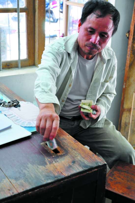 记者坐在一旁观察到,病人看完诊,就会将诊金放入桌子上一处五六厘米长、一厘米宽的缝隙,有的给20元,有的则给一两元,更少的也有。张医生也没去注意病人给多少诊金,心无旁骛地、不受干扰地为患者看病。